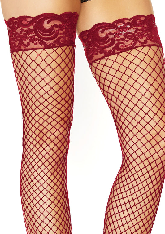 Stay Up Fishnet Thigh Highs - One Size - Burgundy