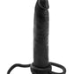 This Double Trouble strap-on allows you to experience the thrill of double penetration without involving another partner. The TPR ring on the top of the shaft acts as a performance-enhancing cock ring while the large bottom ring loops around his balls for a super tight squeeze. The dildo features a tapered tip for easy entry and is completely seamless. Its firm enough so that it wont