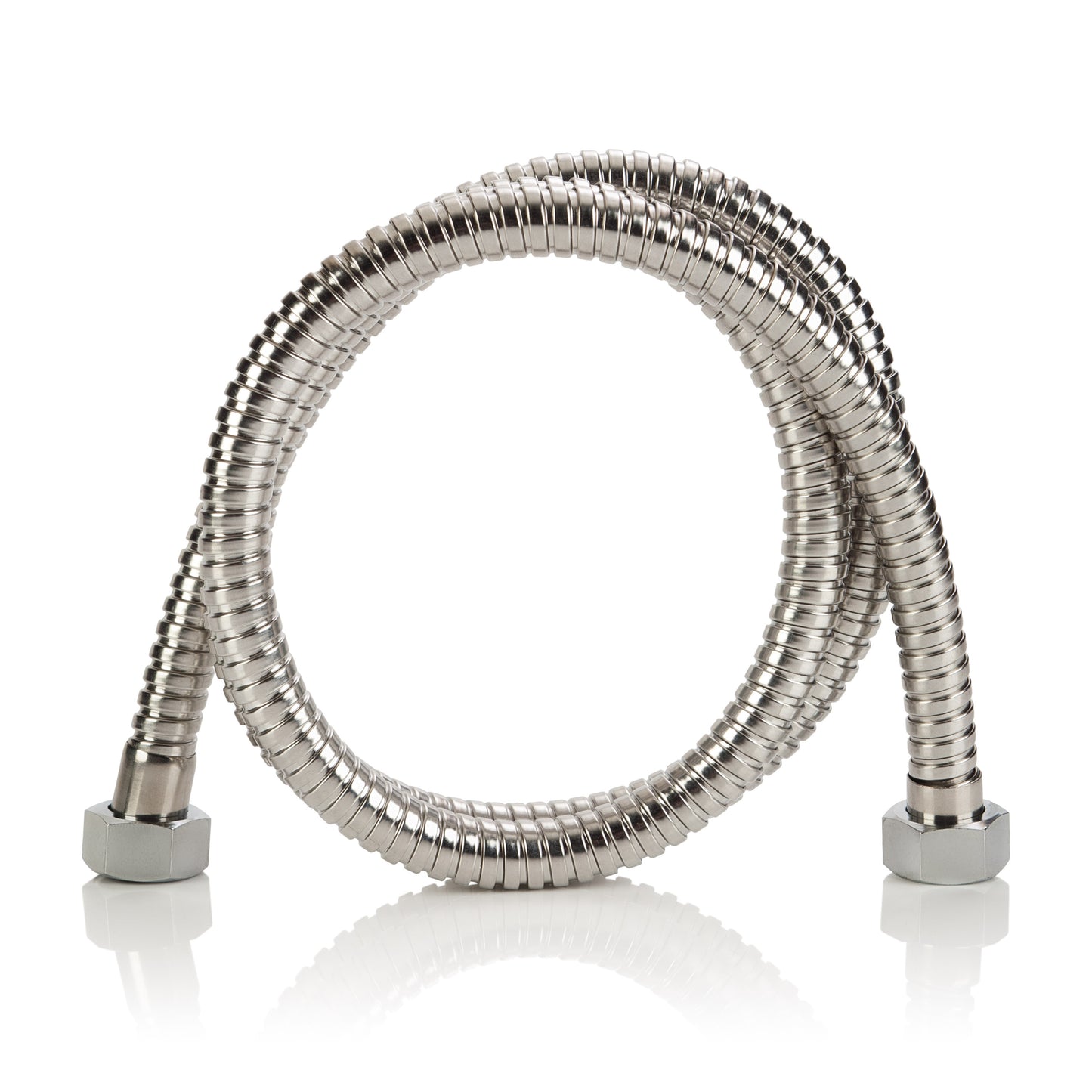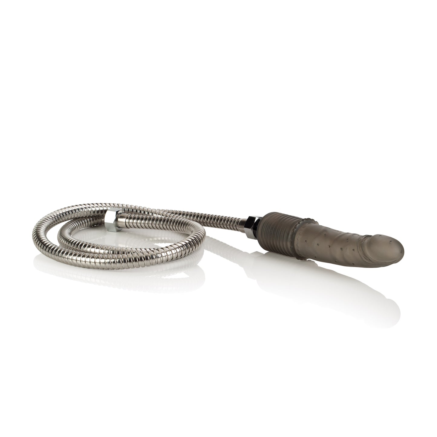 Removable perforated soft Jelly dong shaped nozzle with a non-tarnishing, nickel-free hose. Attaches easily to any shower.