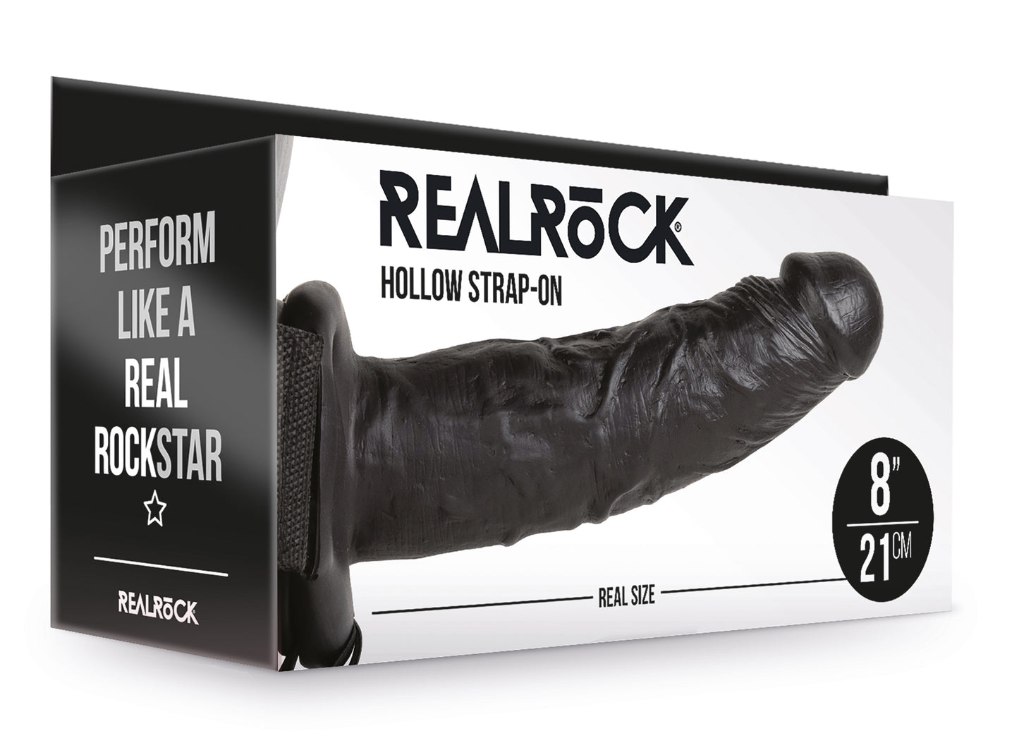 Be the RealRock Star that youve always wanted to be with this RealRock Hollow Strap-On! This gear will give you extra girth and length, help you last longer, reduce premature ejaculation, help you perform even if you have erectile dysfunction and never disappoint your partner ever again. The Strap-On is adjustable, so it will fit any body shape. The waistband is comfortable, so it wont move while you show your best moves. The dildo of this Strap-On has a realistic look and feel to it, resulting in an experience that cant be distinguished from the real deal. So, its time to buckle up and get ready to rock!