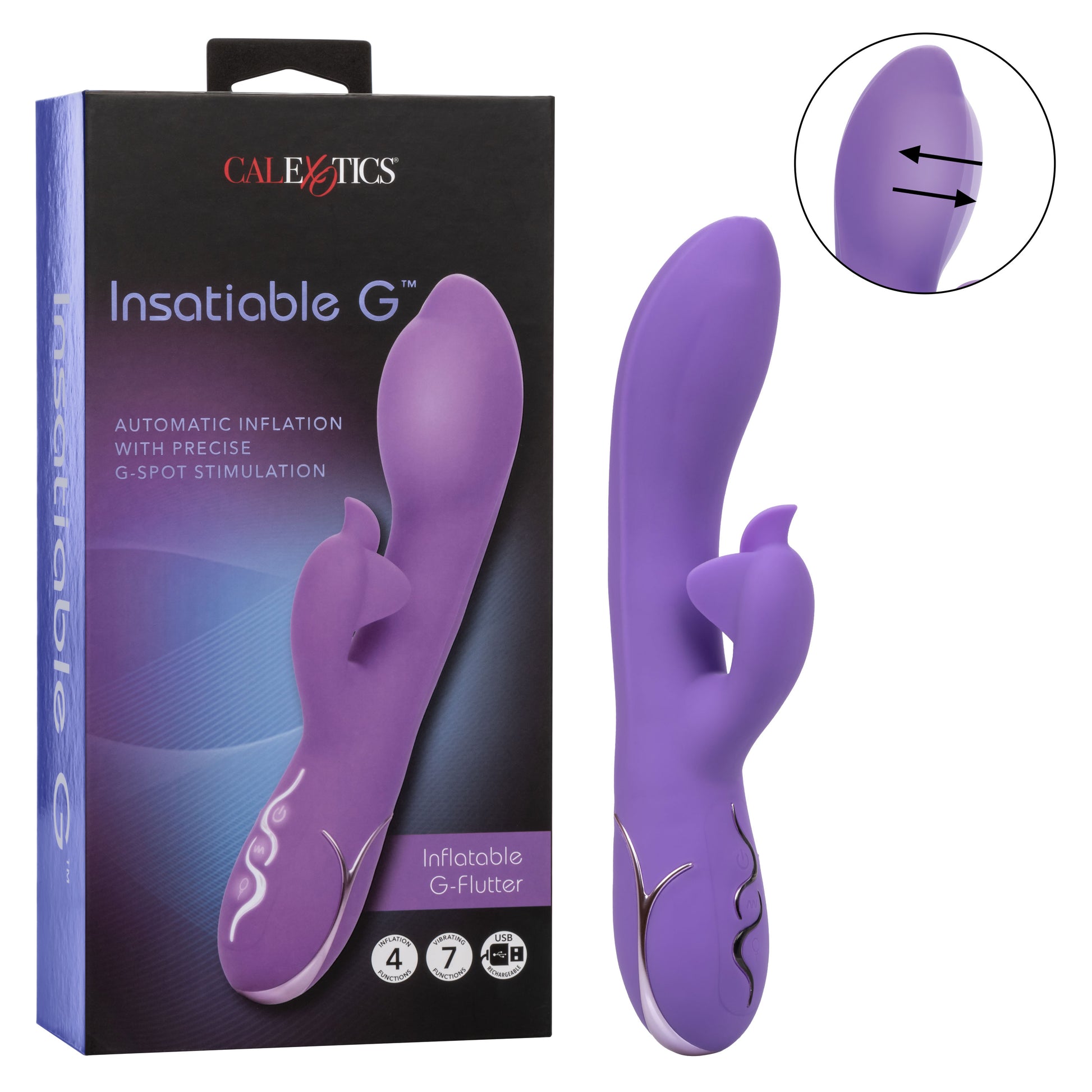 The Insatiable G Inflatable G-Flutter is from the CalExotics Insatiable G product line, but with a special feature that is sure to tickle your fancy. The powerful tickler is multi-pronged to ensure full coverage, even for those moments you are locked in ecstasy.